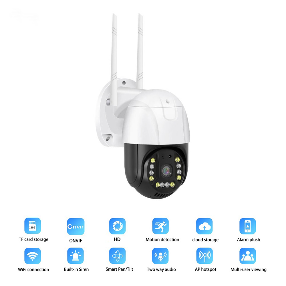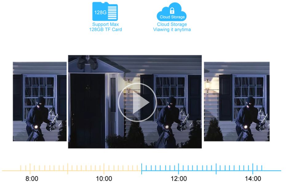 Camera wireless PTZ este dotata cu un slot pentru carduri care accepta carduri TF de pana la 128 GB. (cardul nu este inclus in acest pachet)