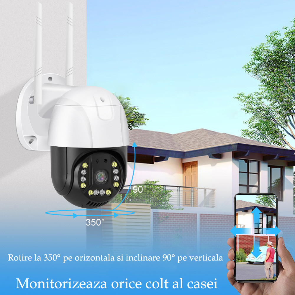 Functia audio bidirectionala va permite sa ascultati si sa vorbiti prin camera. Vorbiti cu curierul, jucati-va cu animalele de companie sau chiar faceti un avertisment sonor pentru a speria potentialii intrusi etc.