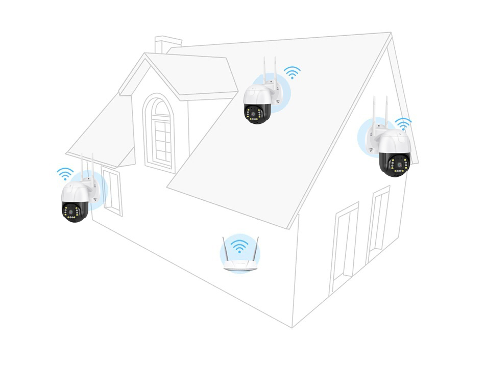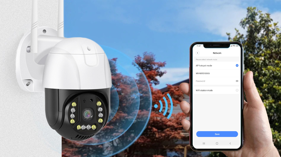 Aceasta camera PTZ are un WiFi AP integrat , astfel incat va puteti conecta la AP-ul WiFi al camerei pentru a viziona fluxul live in intervalul de aproximativ 15 de metri fara retea.