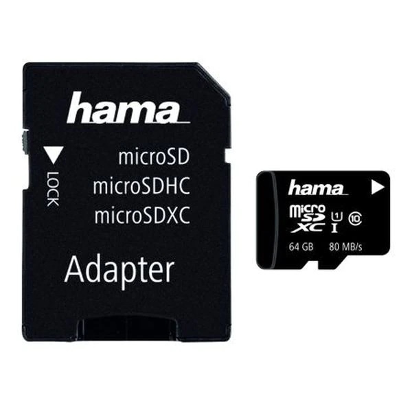 Card de memorie HAMA microSDXC 64GB + adaptor, clasa 10 UHS-I, 80MBs