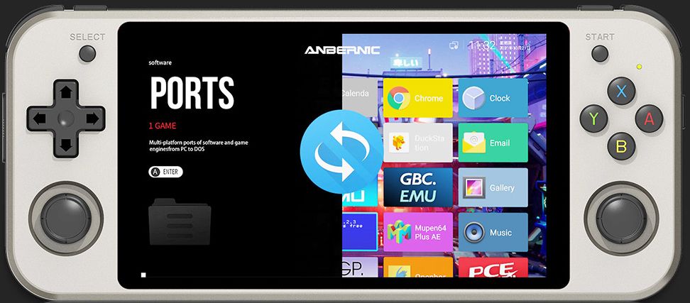 Consola portabila gaming ANBERNIC RG552 functioneaza cu doua sisteme de operare Linux si Android. Puteti sa va jucati diverse jocuri pe platforma Android cat si pe Linux.