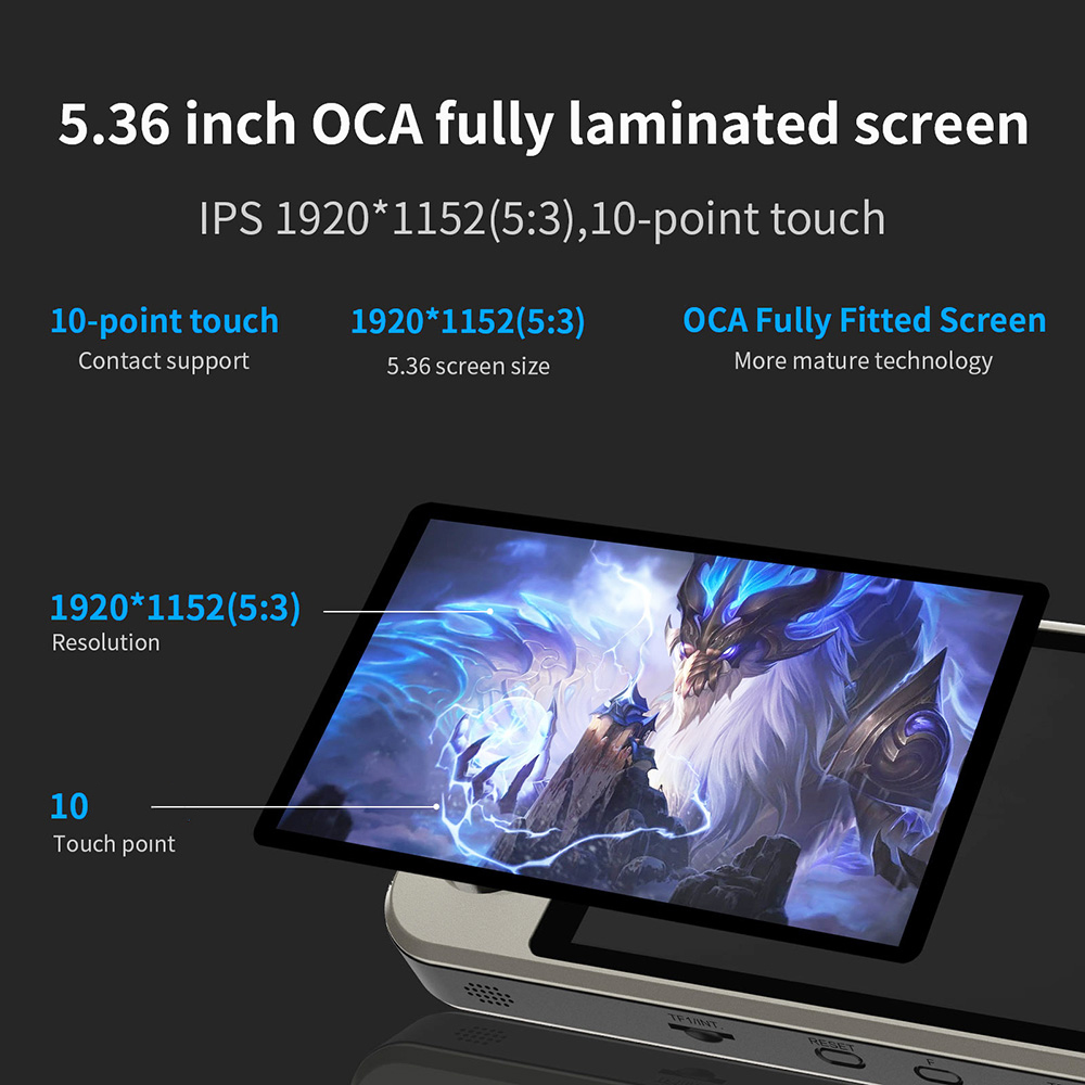 Consola ANBERNIC RG552 contine un impresionant ecran cu laminare completa OCA de 5.36 inch are o performanta excelenta antiseismica anti-detonare, cee ce inbunatateste considerabil siguranta generala, fiabilitatea, durabilitatea si estetica ecranului tactil si mentine in mod efficient stabilitatea si utilizarea pe termen lung a ecranului tactil.