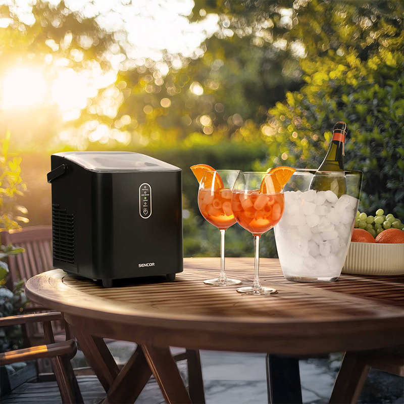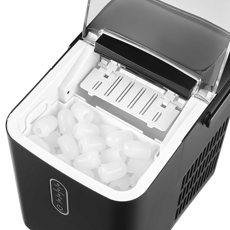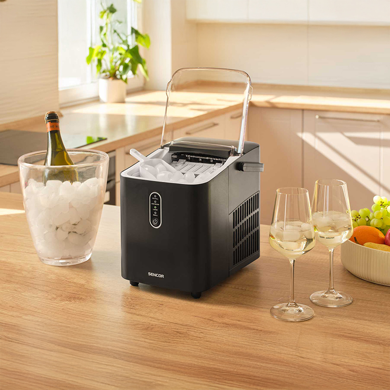 Perfect pentru rulota, barca sau bucătăria mică, acest aparat de gheață este compact, portabil și funcționează oriunde există o priză disponibilă. Adăugați doar 1 l de apă proaspătă, apăsați butonul și bucurați-vă de cuburi de gheață în doar 6-8 minute. Perfect pentru petreceri - produce până la 12 kg de gheață pe zi. Puteți alege dintre două dimensiuni de cuburi de gheață în formă de glonț. Funcționarea silențioasă vă pregătește 8 cuburi de gheață într-un singur ciclu și le colectează în coșul de gheață de până la 600 g. Funcția de oprire automată asigură oprirea producției de gheață atunci când recipientul este plin sau recipientul de apă este gol. Monitorizați producția de gheață prin intermediul capacului mare și transparent. Lopățică de gheață convenabilă, ideală pentru reumplerea găleților de gheață sau depozitarea cuburilor de gheață. Ușor de utilizat cu un singur buton. Supapa de golire ajută la golirea ușoară a rezervorului de apă după terminarea preparării gheții.