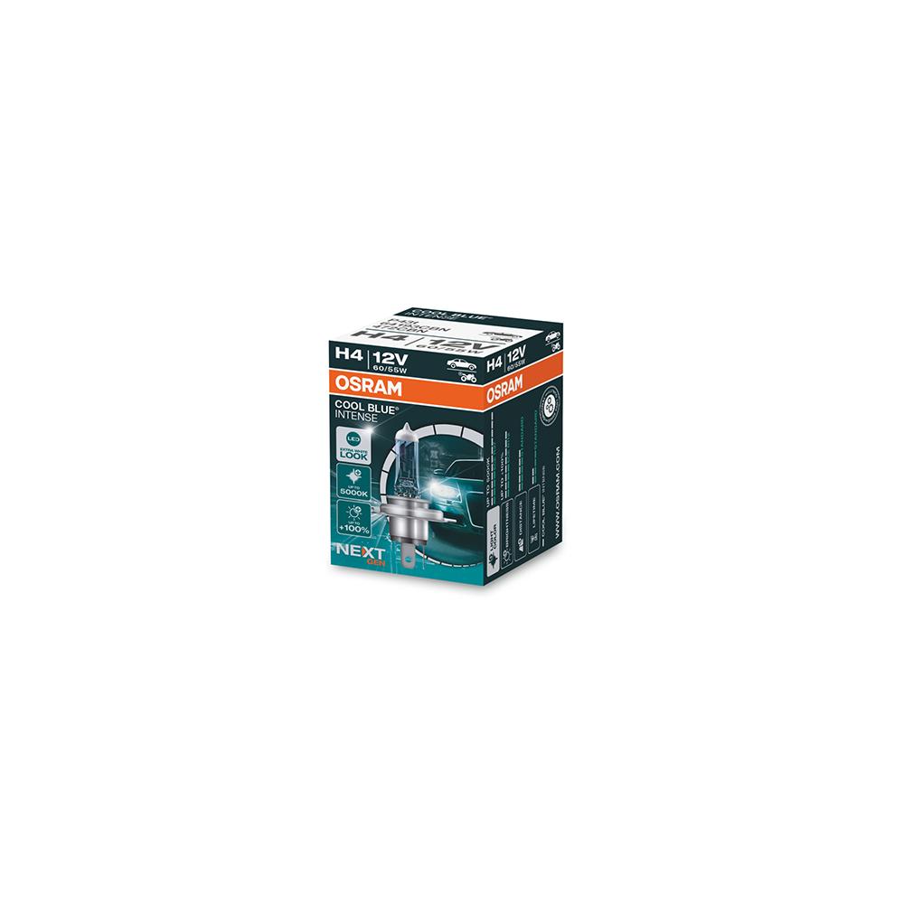 Becul Osram 12V H4 60/55W Cool Blue Intense Nextgen ofera o iluminare alba stralucitoare pentru vehiculele cu sistem electric de 12V. Acest bec H4 este potrivit pentru iluminarea principala (high beam) si pentru iluminarea de drum (low beam). Tehnologia Cool Blue Intense Nextgen aduce un aspect modern si stilizat, imbunatatind in acelasi timp vizibilitatea pe drum in conditii de zi sau de noapte. Este o alegere populara pentru imbunatatirea esteticii si a iluminarii vehiculului dumneavoastra.