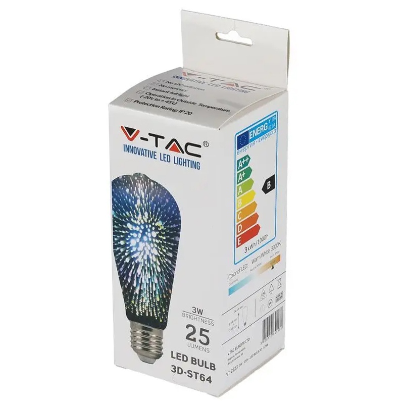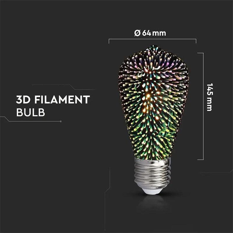 Bec Led St64 E27 3w Cu Filament 3000k Alb Cald Model 3d