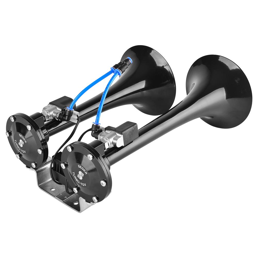 Claxon Camion Negru Metalic Cu 2 Goarne, Melodic, 24V 1A