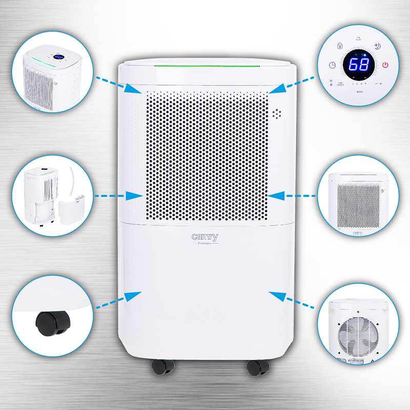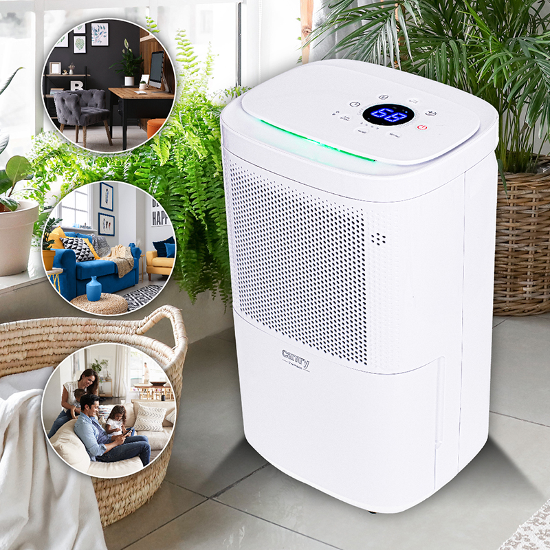 CR 7851 este un dezumidificator de aer cu compresor cu o capacitate de 10 litri de apa pe zi cu un display LCD. Aparatul are 4 moduri de utilizare: normal, continuu, puternic si uscare haine. Dezumidificatorul este echipat cu un senzor precis care indică nivelul actual de umiditate din încăpere. După ce se aduce încăperea la nivelul de umiditate așteptat, dispozitivul oprește automat compresorul, asigurând circulația aerului prin ventilatorul care funcționează. În plus, dezumidificatorul este echipat cu un indicator de umiditate care arată nivelul de umiditate în 3 culori pe partea din față a dispozitivului. Funcția de blocare parentală și diminuarea luminii afișajului sunt avantaje suplimentare ale produsului.