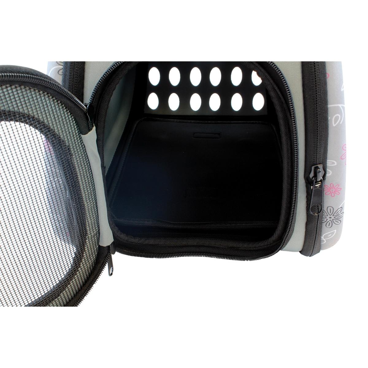 Geantă de transport de înaltă calitate pentru animalele de companie mici. Perfect pentru a ne muta pisica sau iepurele la orice distanță. Designul extrem de confortabil va asigura confort atât pentru noi cât și pentru animale. Materialul puternic din care au fost confecționate transportoarele, un mâner solid și o curea de umăr reglabilă asigură o utilizare lungă și fără probleme a produsului. Geanta este respirabilă și sigură pentru animalul de companie datorită sistemului de ventilație. Confortul de utilizare este asigurat și de un fermoar dublu pe ambele părți ale suportului.