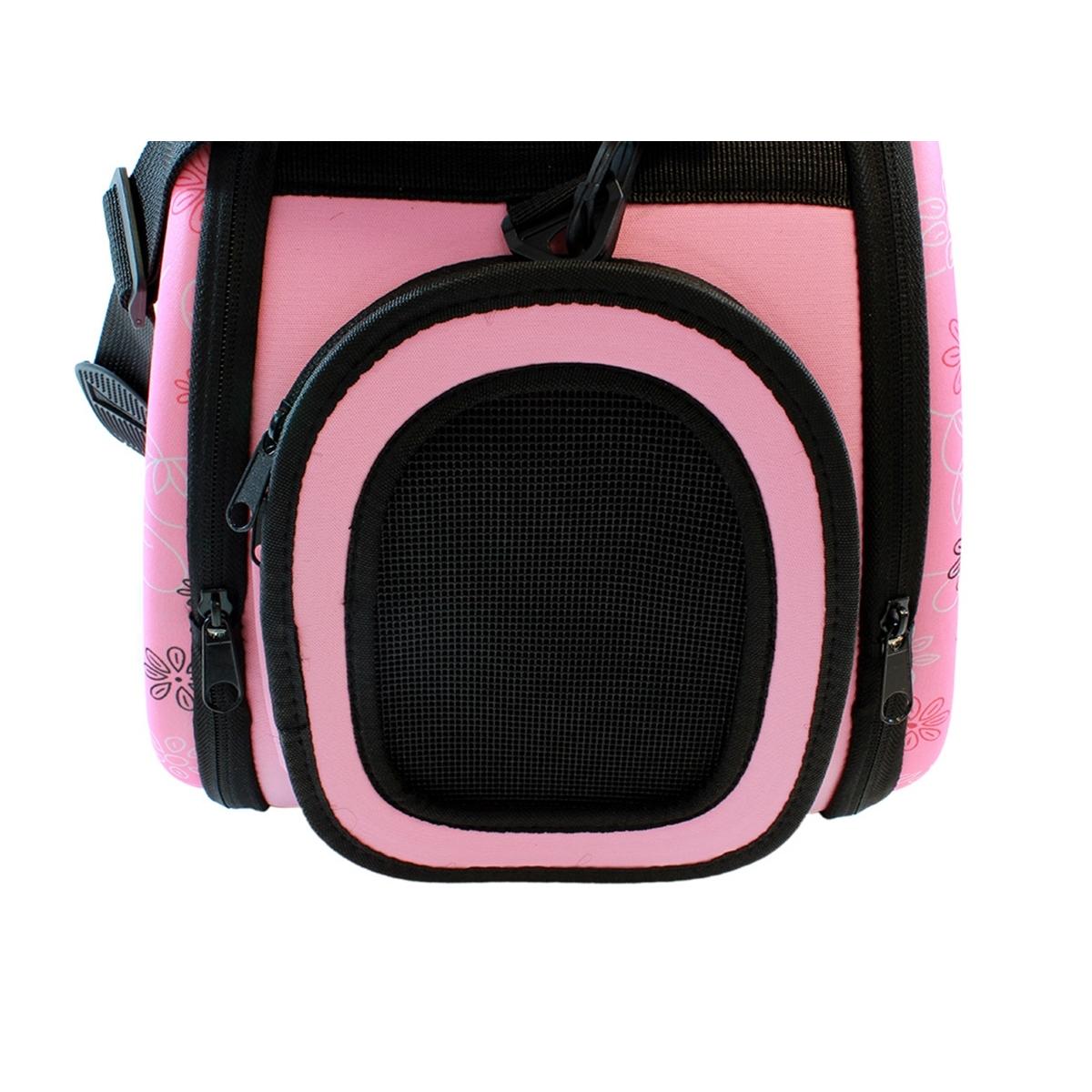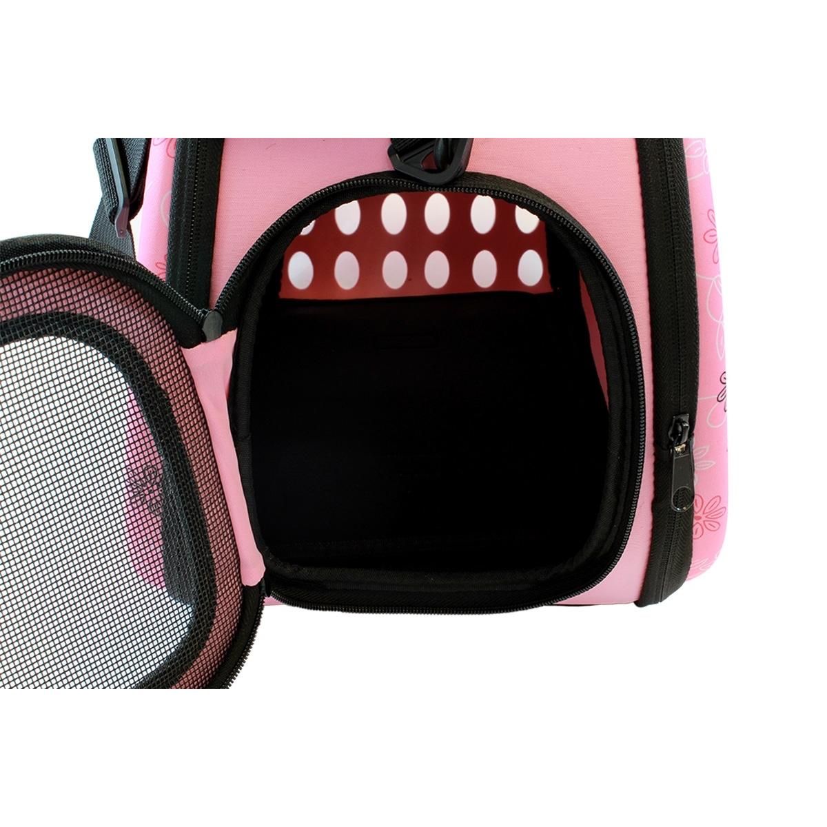 Geantă de transport de înaltă calitate pentru animalele de companie mici. Perfect pentru a ne muta pisica sau iepurele la orice distanță. Designul extrem de confortabil va asigura confort atât pentru noi cât și pentru animale. Materialul puternic din care au fost confecționate transportoarele, un mâner solid și o curea de umăr reglabilă asigură o utilizare lungă și fără probleme a produsului. Geanta este respirabilă și sigură pentru animalul de companie datorită sistemului de ventilație. Confortul de utilizare este asigurat și de un fermoar dublu pe ambele părți ale suportului.