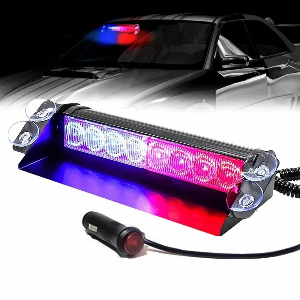 Lampa Stroboscopica Pentru Parbriz. Montaj Cu Ventuze, Culori Rosu - Albastru, Putere 8W, Alimentare 12V