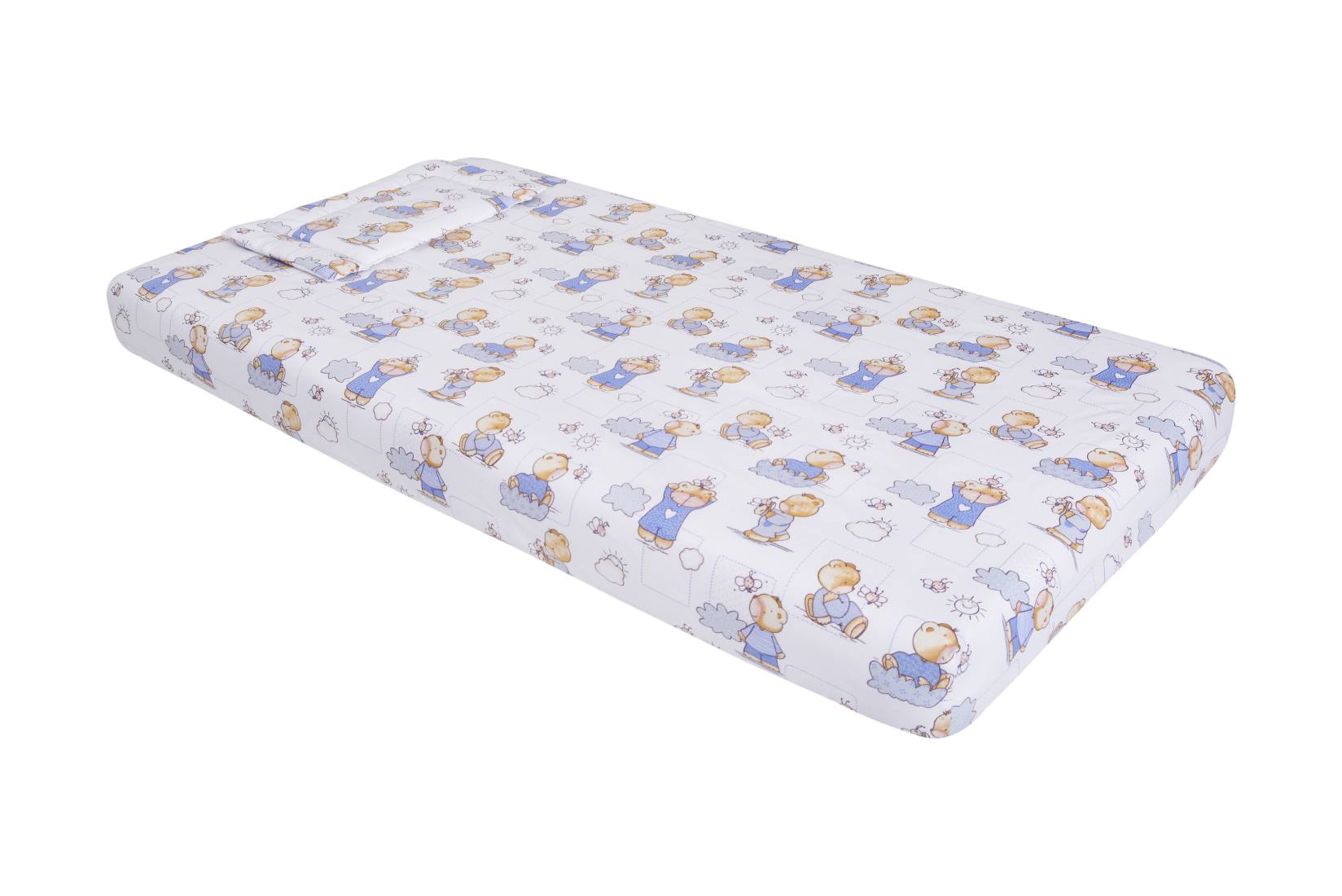 Lenjerie patut bebe Somnart, cearceaf pat 60x120x10 cu elastic, cearceaf pilota 80x110, perna joasa 20x35, Ursuleti