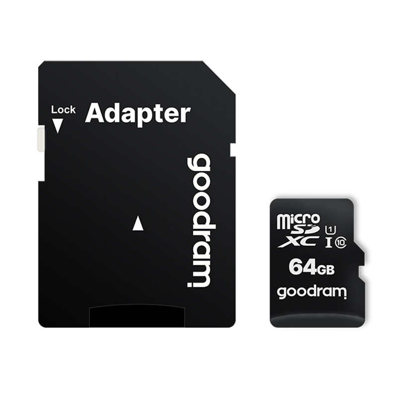 Card microSD cu adaptor, capacitate 64 GB, clasa 10, marca Goodram