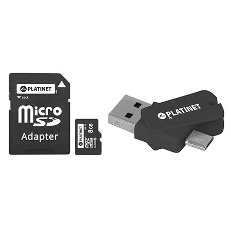 Set compus dintr-un card microSD capacitate 8GB clasa 10, cu adaptor SD, USB si microUSB, marca Platinet