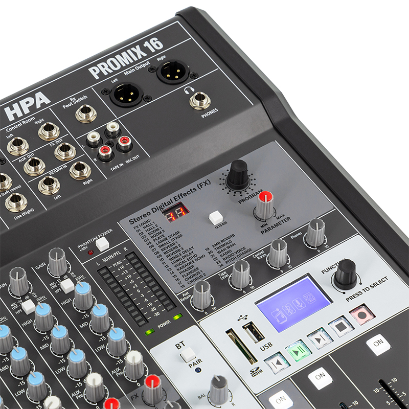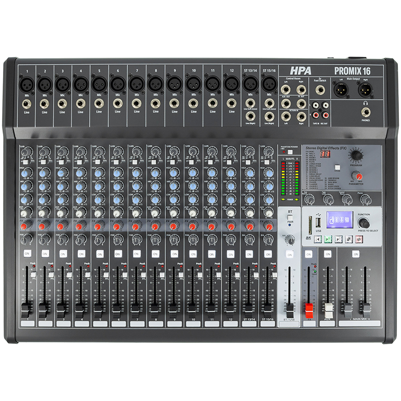 Consolă de mixaj analogică HPA Promix 16 cu 16 canale și multi-efecte,