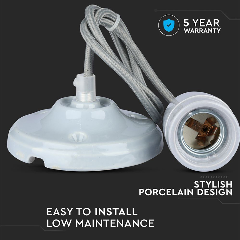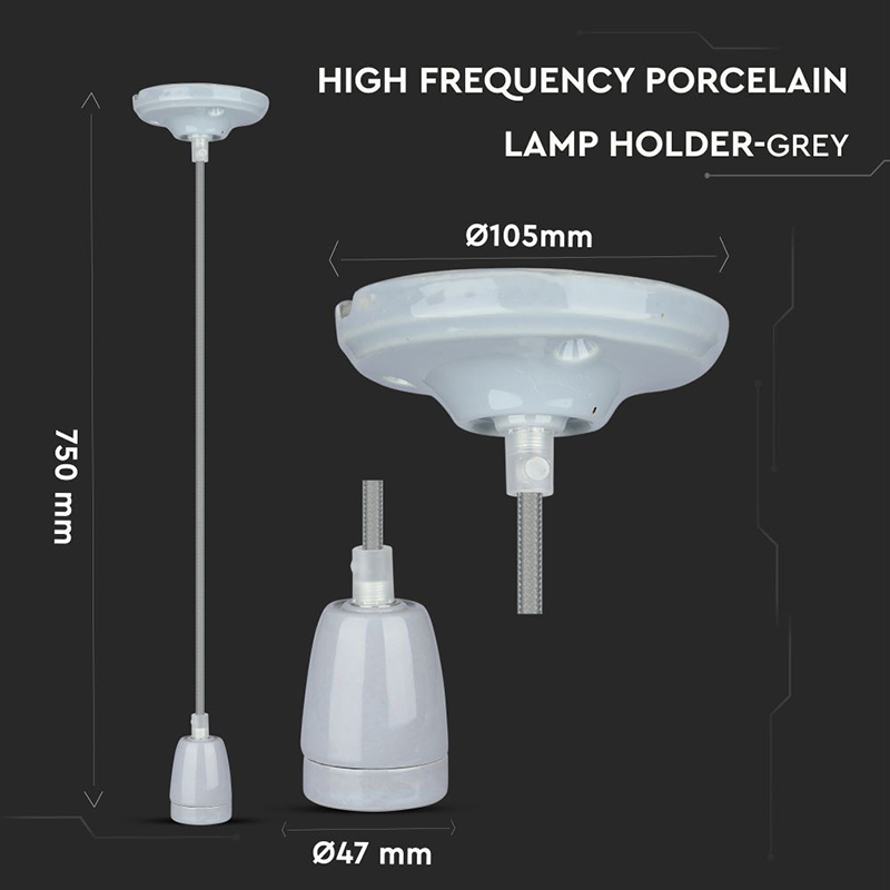 Pendul Tavan Portelan Soclu E27 - Gri
