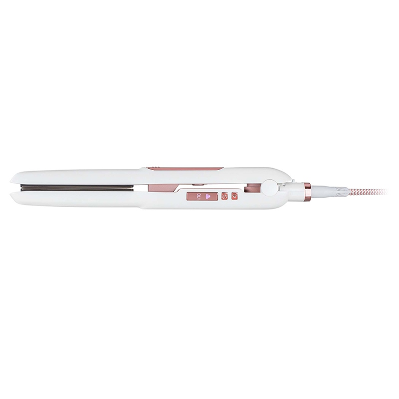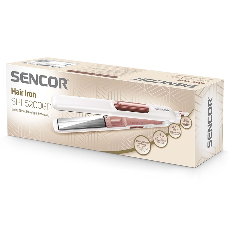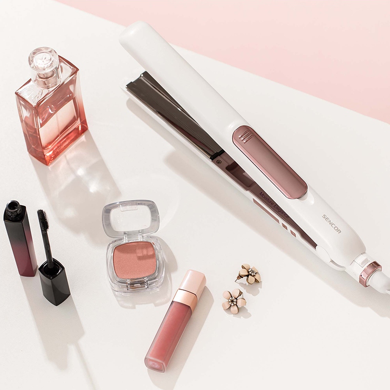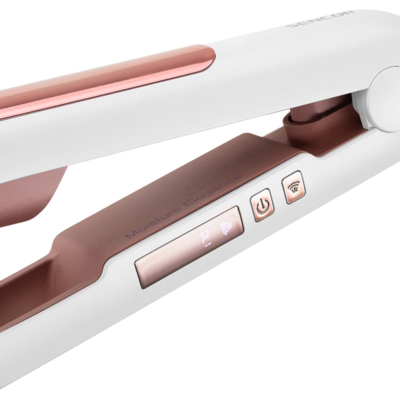 Plăcile de fier acoperite cu titan ale aparatului de îndreptat părul Sencor SHI 5200GD sunt concepute pentru a obține un efect maxim de netezire pe toată lungimea suprafeței de îndreptat, oferind astfel o strălucire strălucitoare părului. Datorită designului subțire al dispozitivului, pot fi realizate cu ușurință nu numai coafuri perfect netede, ci și ondulate. Datorită unei funcții speciale, este posibilă umezirea părului cu abur, pentru îngrijirea blândă a părului și o coafură perfectă. Incalzirea rapida - pana la 230° C - este asigurata de tehnologia PTC. Cablul rotativ la 360° oferă protecție împotriva încurcării și ruperii.