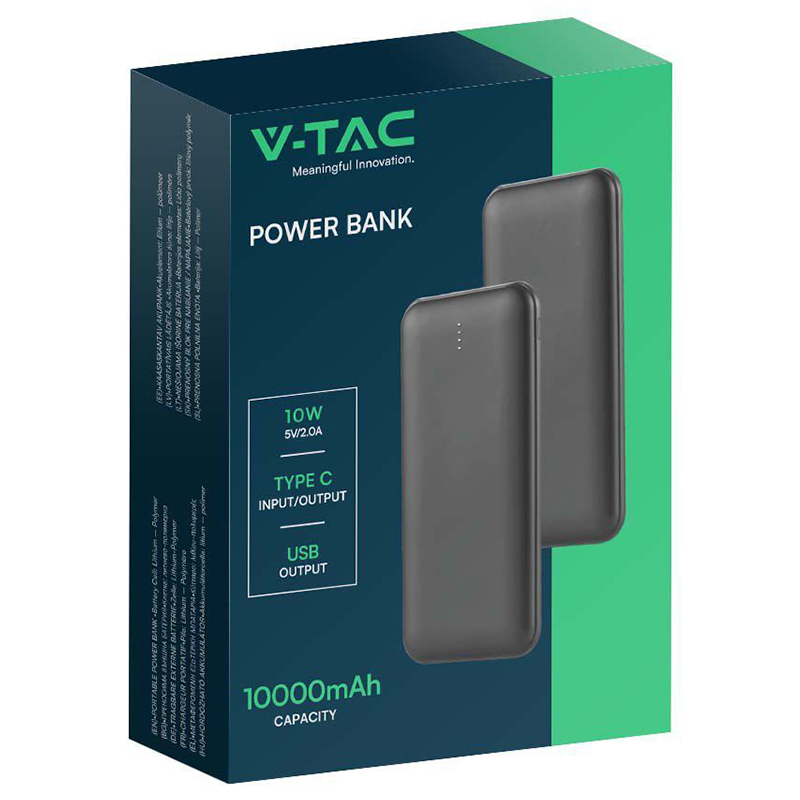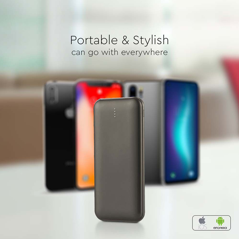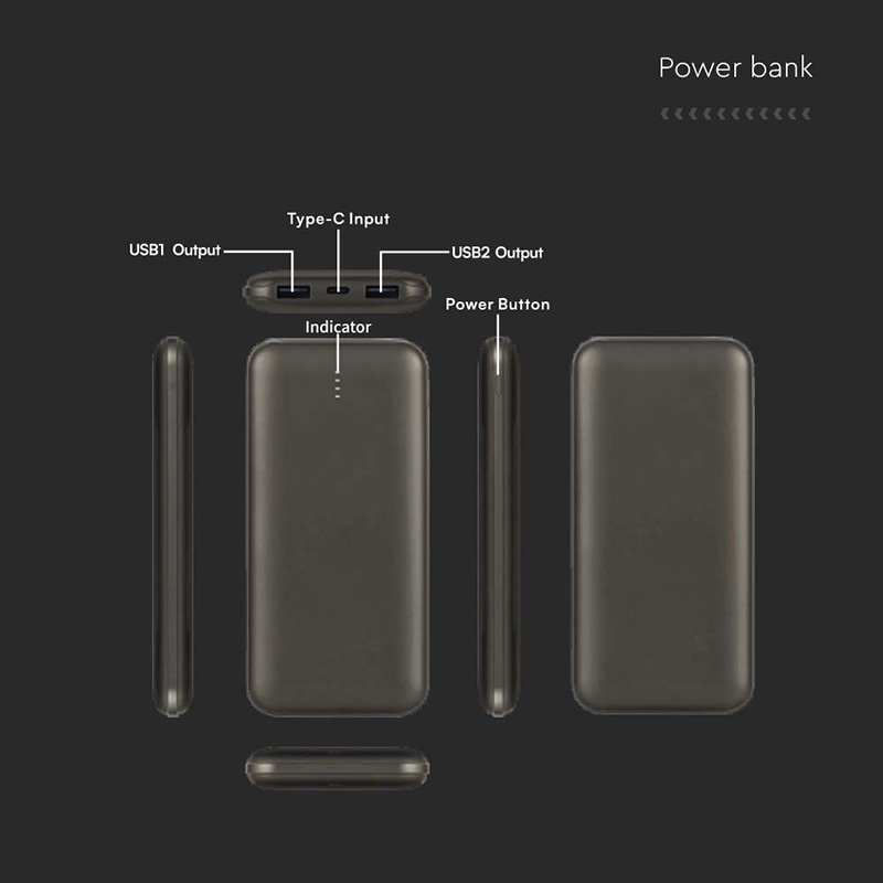 Power Bank 10000mah Cu Cablu 30cm Tip C - Gri Antracit