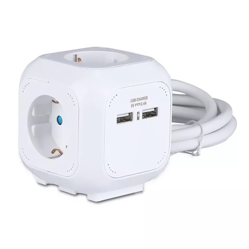 Prelungitor Cubic 3x1.5mm 1.4m 4 Cai 16a + 2 Usb 2.1a