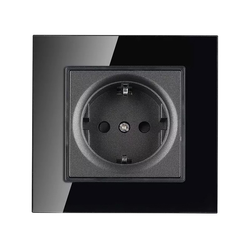 Priza Simpla 16a Cu Rama Din Sticla , Negru