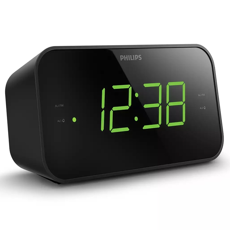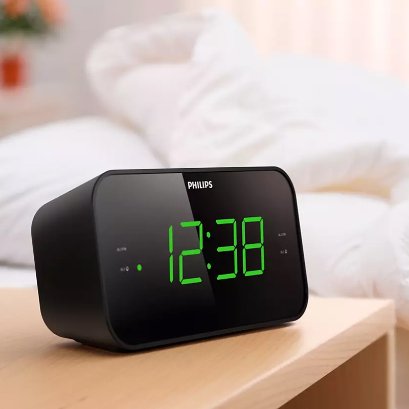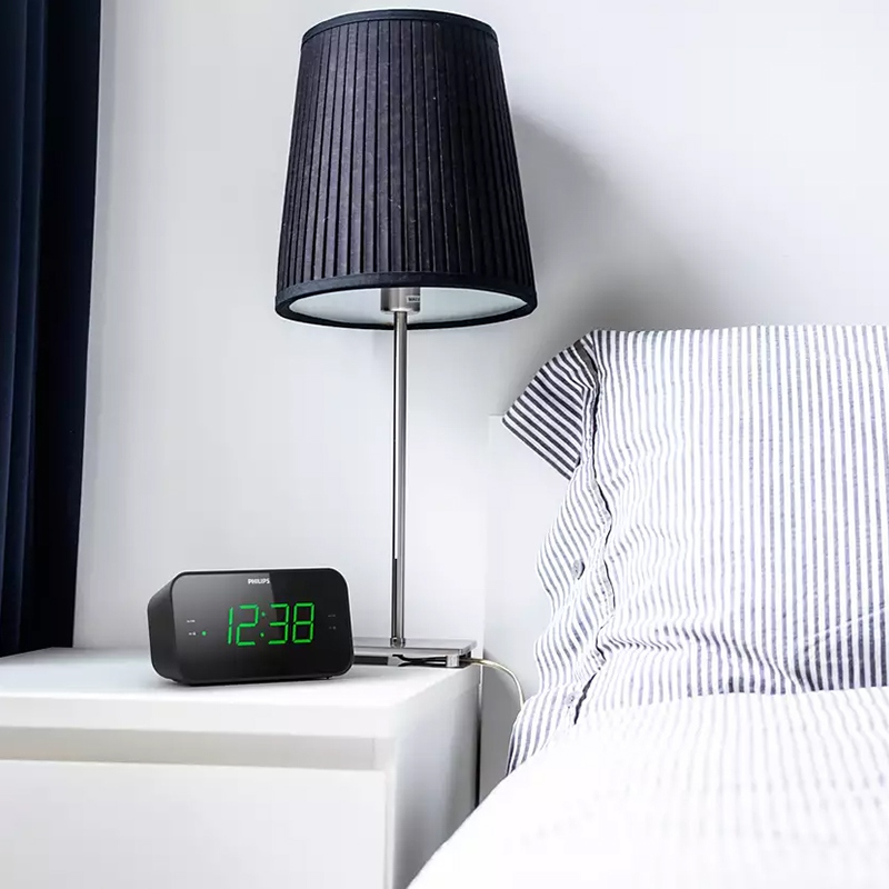 Cu funcţia de alarmă dublă poţi să setezi două alarme, ambele putând fi setate să folosească fie un ton de alarmă, fie un post de radio. Este perfect dacă ai tendinţa să amâni prima alarmă. Sau dacă partenerul tău trebuie să se trezească înaintea ta.