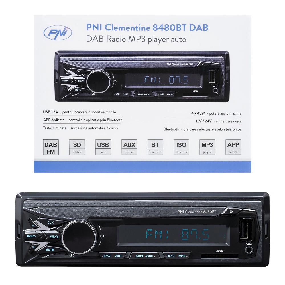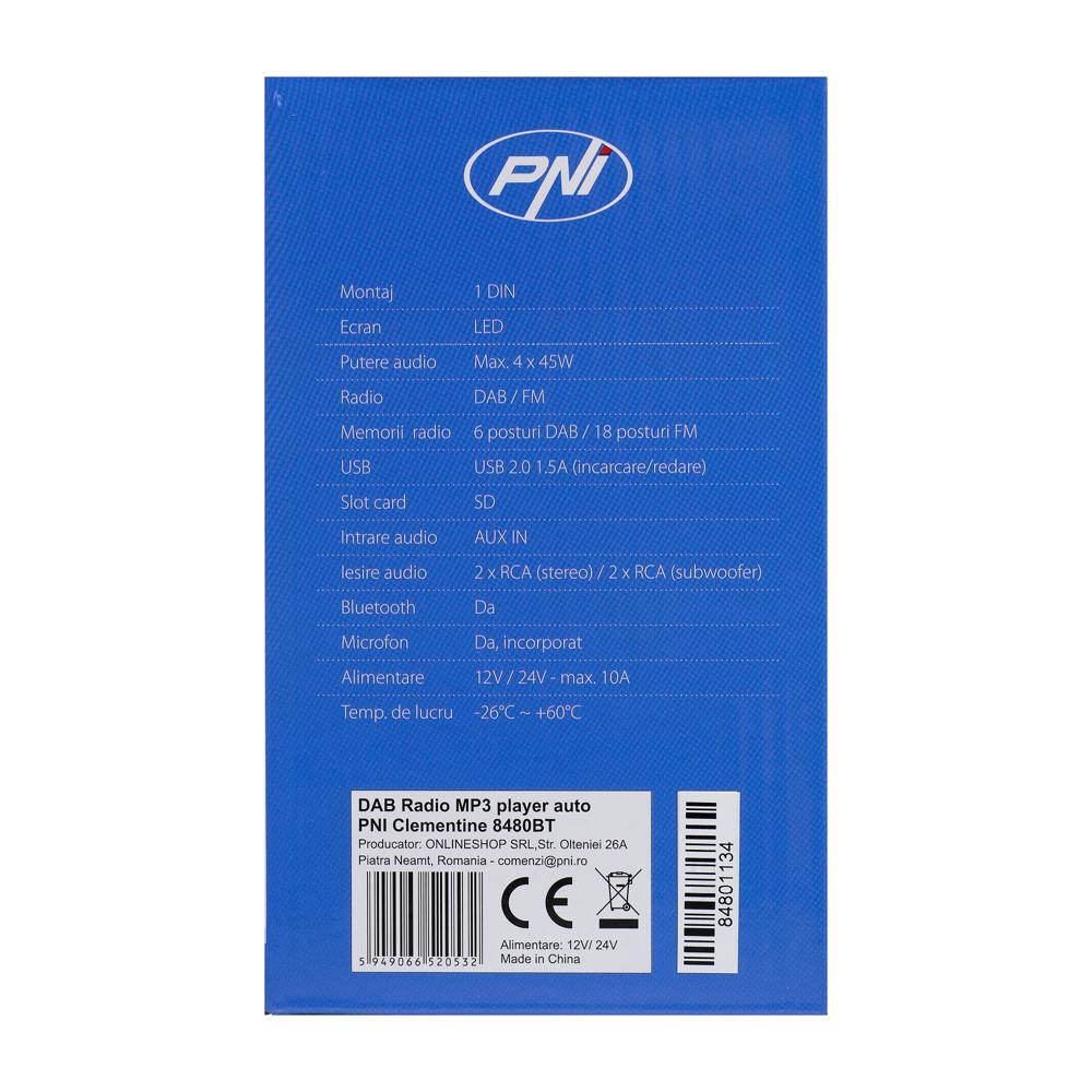 Radio Mp3 Player Auto Dab Si Rds Pni Clementine 8480Bt 4X45W, 12/24V, Cu Sd, Usb, Aux, Rca, Bluetooth Si Usb 1.5A