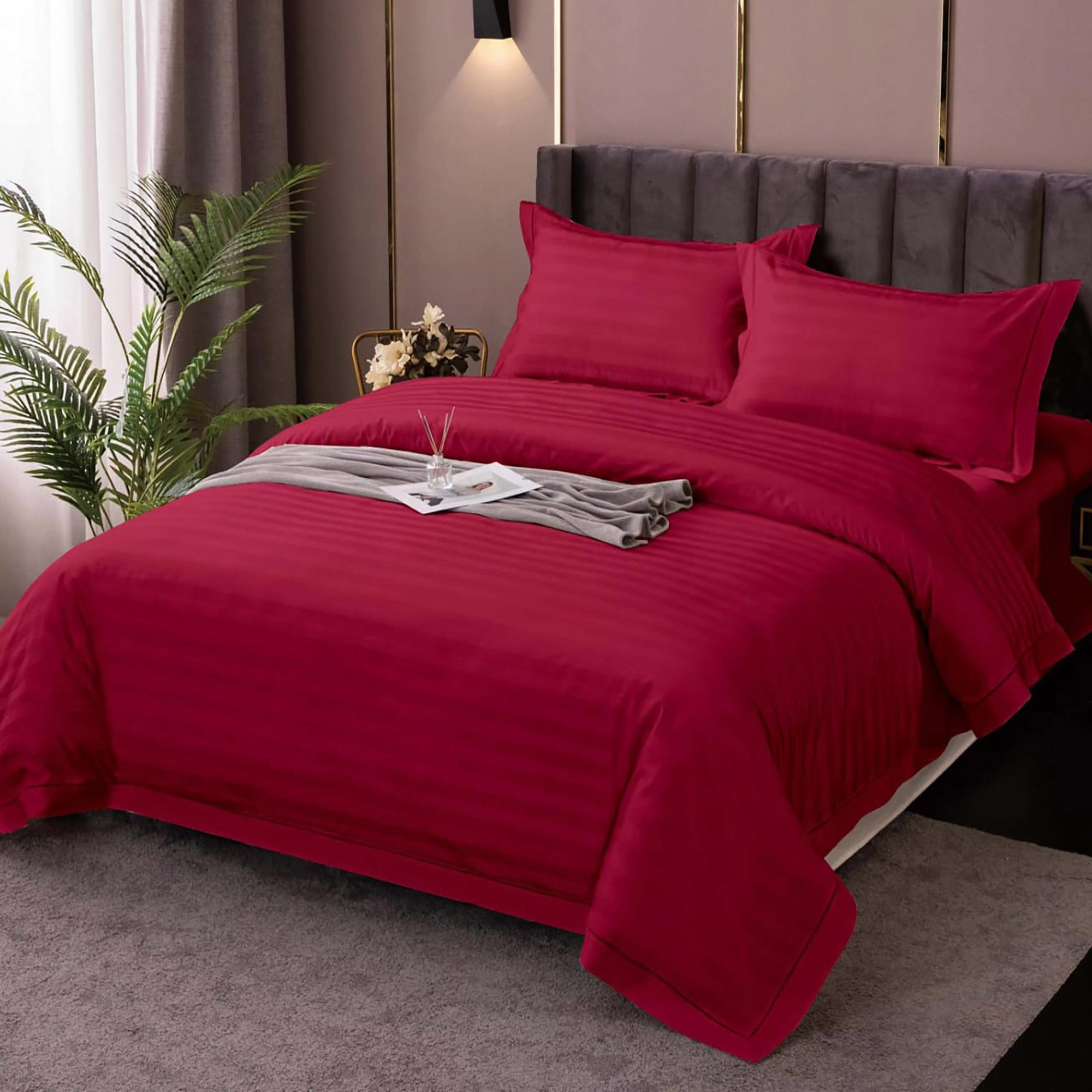 Set Lenjerie De Pat Pentru 2 Persoane Xxl, Bumbac Damasc Policotton, 4 Piese, Cearceaf Pat 230X260, Cearceaf Pilota 230X200, Fete De Perne 50X70 X 2, Bordeaux