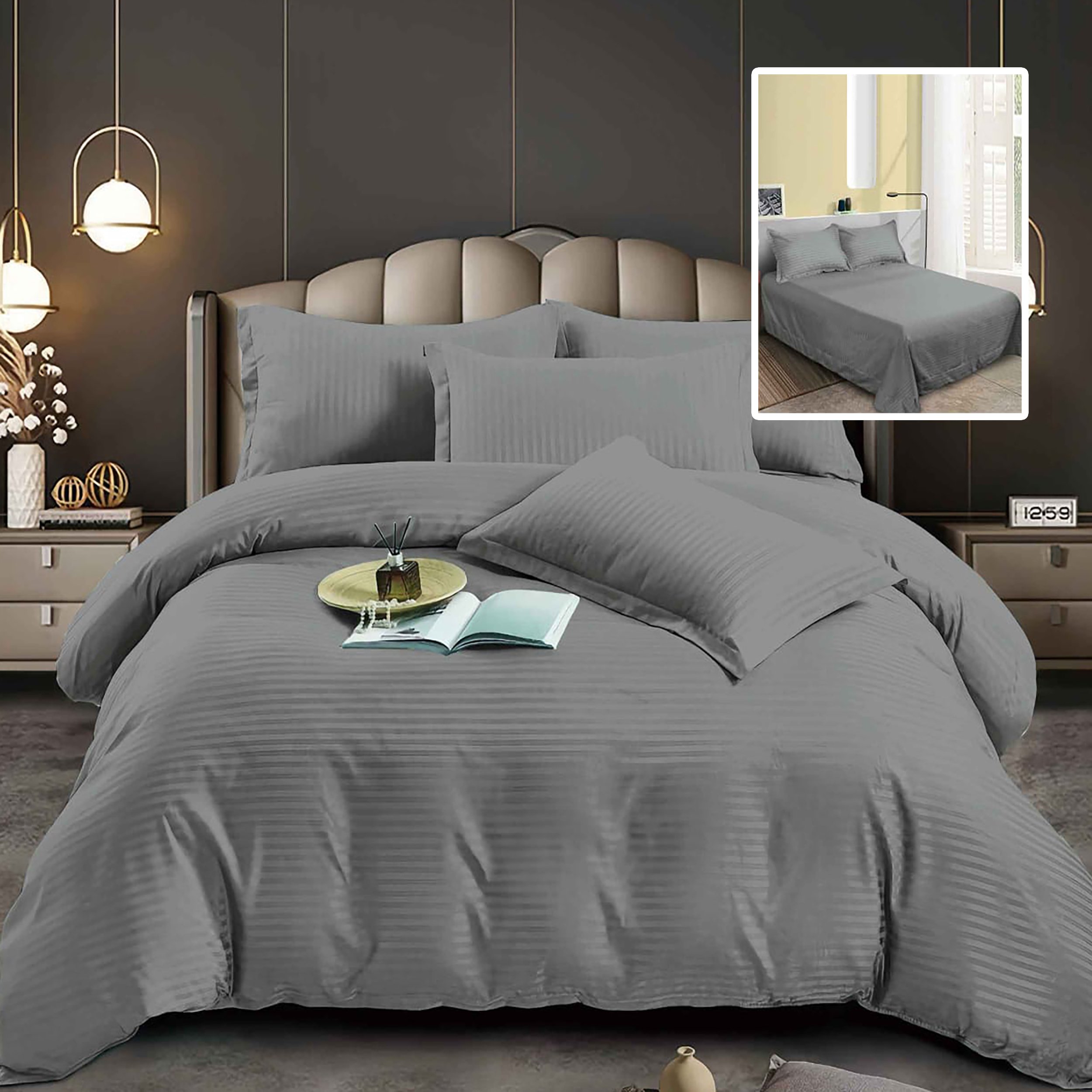 Set Lenjerie De Pat Pentru 2 Persoane Xxl, Bumbac Damasc Policotton, 4 Piese, Cearceaf Pat 230X260, Cearceaf Pilota 230X200, Fete De Perne 50X70 X 2, Gri