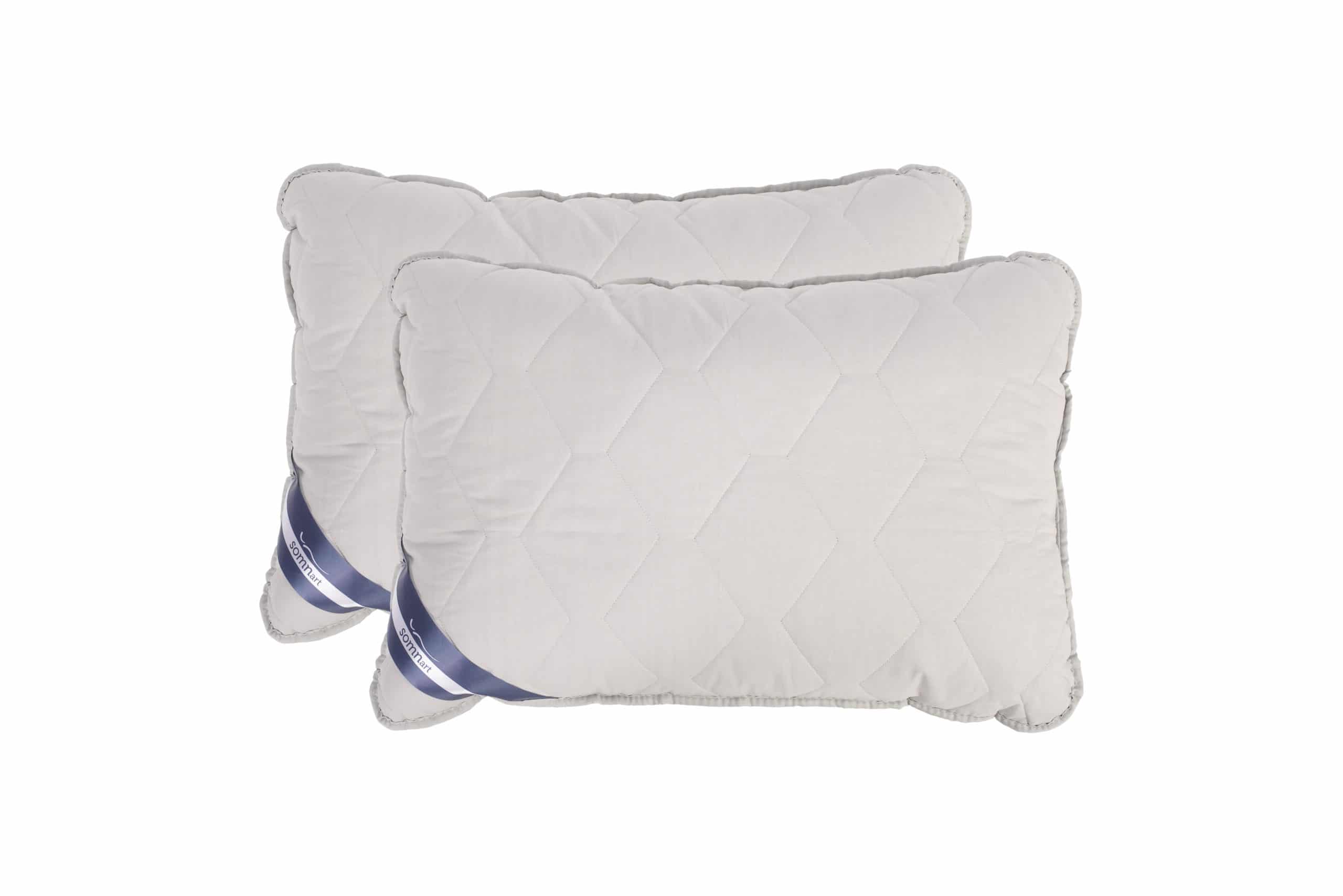 - 2 perne 50x70cm din bumbac culoare gri, uni, matlasata pe intreaga suprafata umplutura 100% poliester marca SuperBall, lavabila la 40 de grade