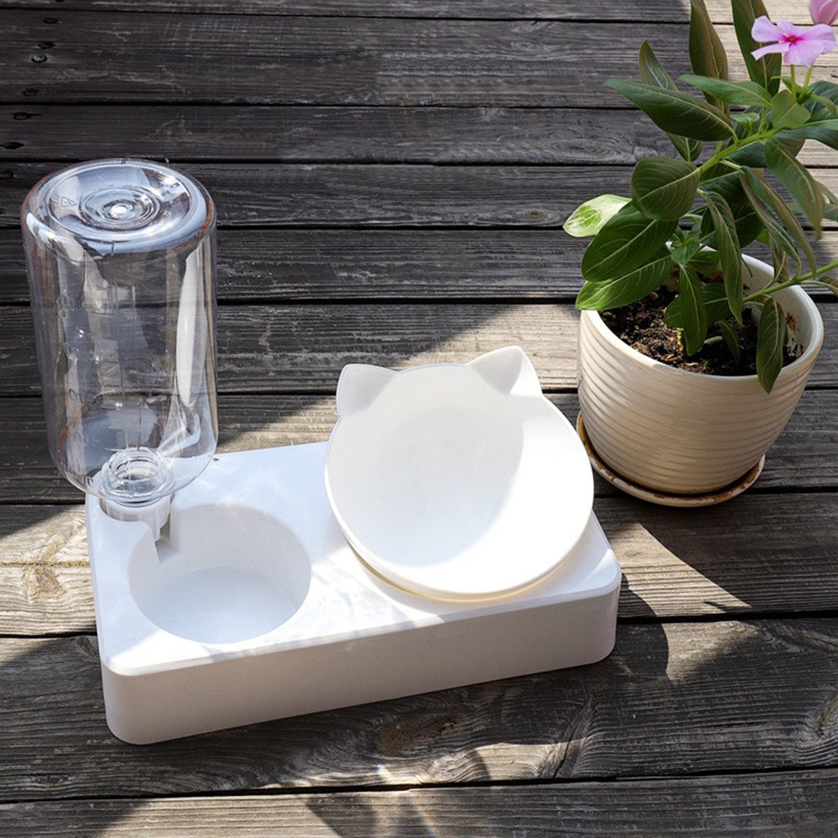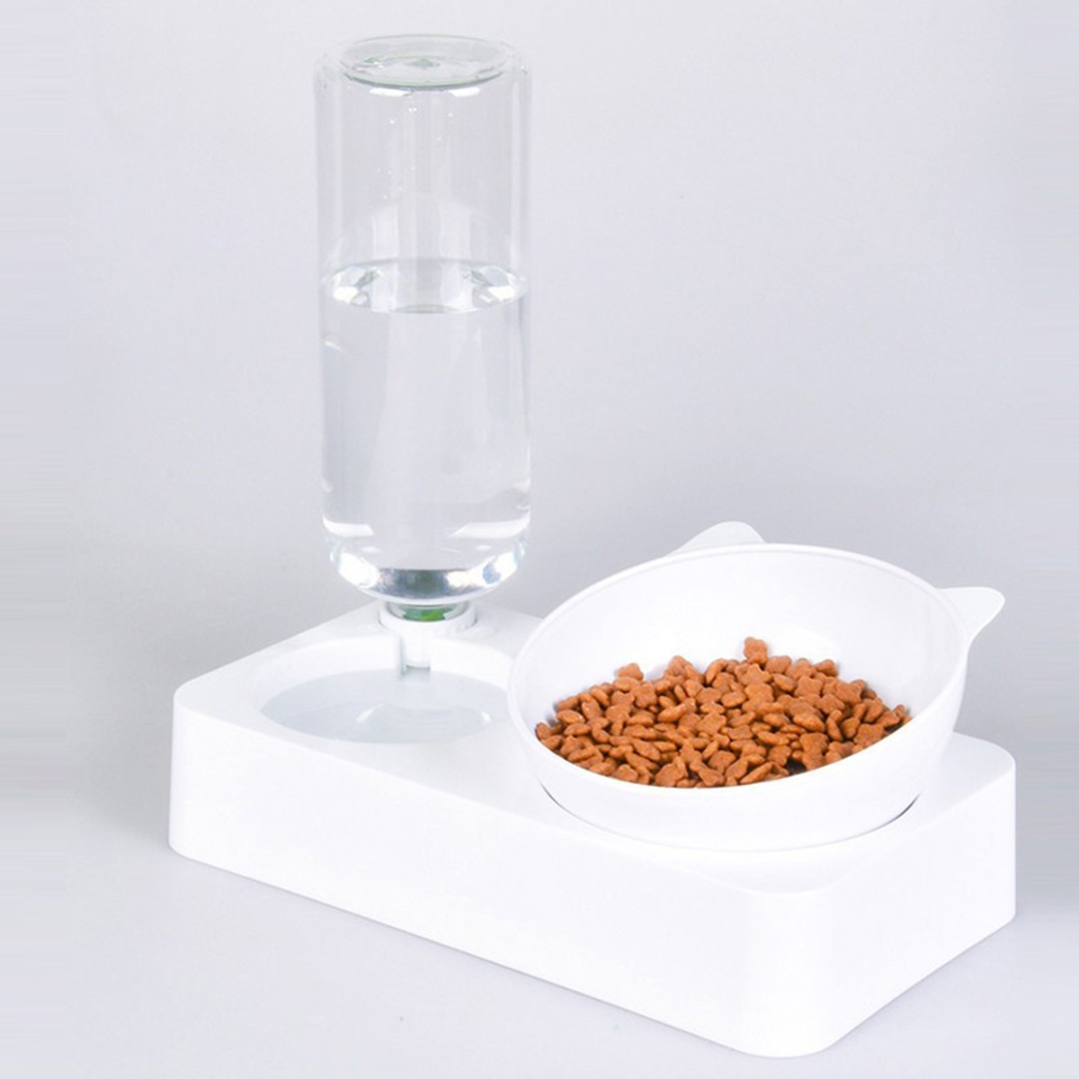 Dozator automat de apă și un bol pentru mâncare pentru pisici. Panta castronului la un unghi de 15 grade face ca animalul tau sa manance mai usor. Sticla de apă cu o capacitate de 0,5 L permite animalului dumneavoastră să aibă acces la apă proaspătă în orice moment. Datorită unei supape speciale, dispozitivul adaugă automat apă din rezervor în vas. Designul compact va funcționa bine în bucătăriile mici și coridoarele.